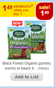 -- Black Forest Organic Gummy Worms or Bears 4 oz. $1.49 = $1.49 EB (limit 1)